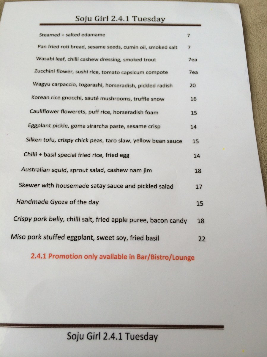 IMG_4700 Soju Girl Two for One Tuesday menu Share this:TwitterEmailFacebookPinterestWhatsAppLike Loading...