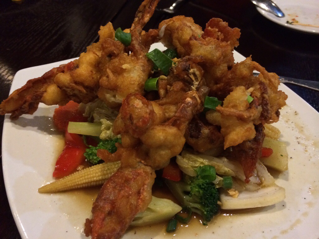 In the entrees, the Mixed tapas (4) $14.50 Peking duck pancake, 1x pad Thai Spring Roll, 1x Yum Beef , 1x Prawn in Golden Jacket is quite good (the duck pancake and yum beef especially tasty), but again not as good as the mains for value. The soft shelled crab, though tempting, is disappointing.