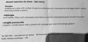 Australia - eating out of Canberra