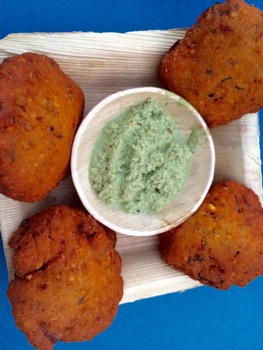 Dal Vada – a crunchy and mildly spiced Bengal lentil dumpling served with coconut chutney $10.
