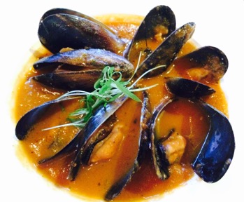 Freshly opened South Australian Black Mussels in Tomato and Basil soup $12