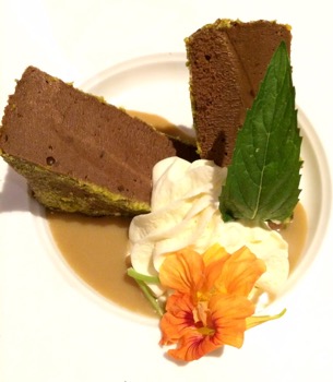 …The pistachio chocolate terrine is very, very rich.