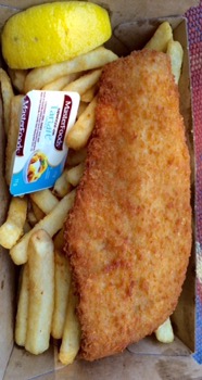 …Battered fish with chips….$12