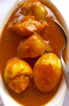 Potato and Egg Curry – Hard boiled eggs cooked with potatoes in a spicy coconut sauce. $19.50