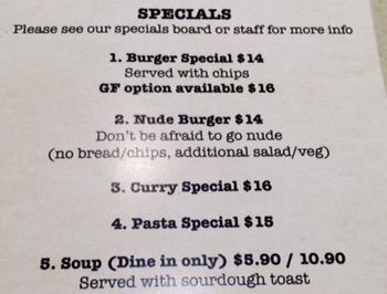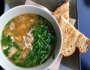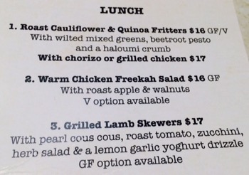The lighter option was a very tasty chicken and rice noodle soup with spinach and toast $5.90 for a very generous serve.