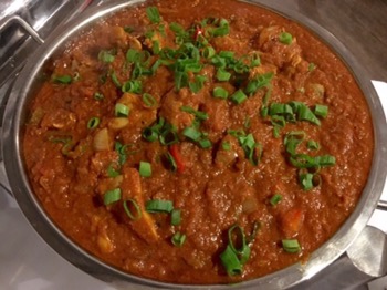 We started with the Spicy Potato Salad served complimentary to diners along with mint sauce and pappadoms.
