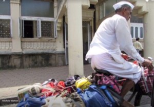 About 9 o’clock each Dabba wallah picks up around 30 different lunches from home cooks and then by bike takes them to the nearest train station….