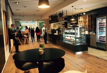 Up to 75 can fit comfortably, and while that will inevitably be quite noisy, the carpet and soft furnishings all help.