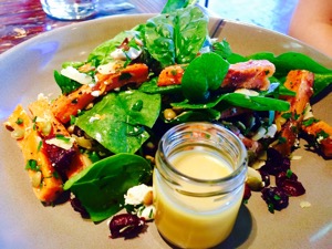 The Vegetable Salad ($14.50) is a little sweeter but also lovely with roasted sweet potato, baby spinach, lentils, feta, toasted almonds, parsley, dried cranberries and pepitas.