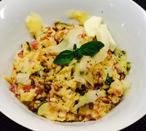 pine nuts. mint and pomegranate really make it special.